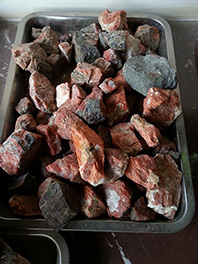 图1-2 品质较差的南红玛瑙原料,可以清晰地看见裂隙是很发育的